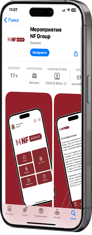 Для регистрации необходимо скачать приложение «Мероприятия NF Group».